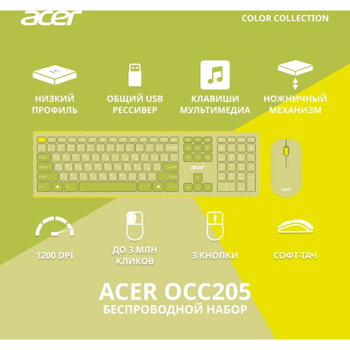 Клавиатура и мышь Acer OCC205 зеленый (ZL. ACCEE.00E)