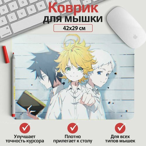 Коврик для мыши Обещанный Неверленд - Эмма, Норман и Рей 42*29 см. Арт. KOW1006