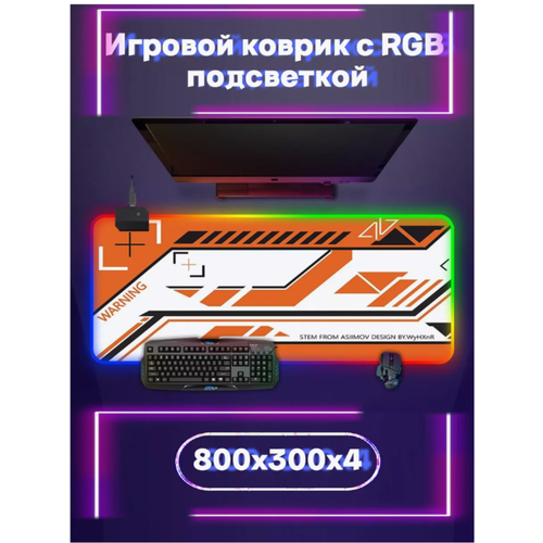 Игровой коврик для мыши с RGB подсветкой, водоотталкивающее покрытие, 800 х 300 х 4 мм, много режимов, коврик для клавиатуры и мыши, Азимов