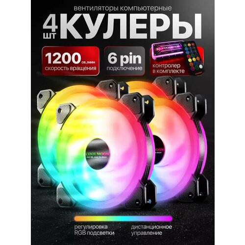 Кулер для ПК с пультом, RGB подсветка , корпусный вентилятор