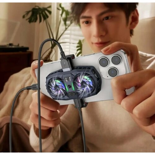 Кулер для смартфона Hoco GM36 Mustango + кабель USB to Type-C 1 метр , 6W, LED, 3 скорости, Черный