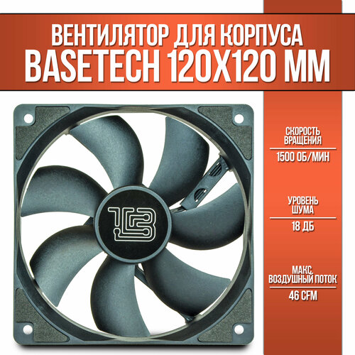 Вентилятор / кулер BaseTech, 120мм, 1500rpm, 18 дБ, 3pin+Molex, 1шт (BT-F120X25-3PB)