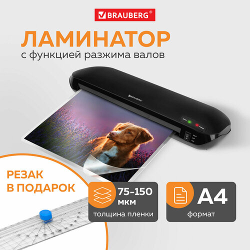 Ламинатор BRAUBERG L460B черный, формат A4, толщина пленки 75-125 мкм, скорость 30 см/мин, 531016 / Квант продажи 1 Ед.