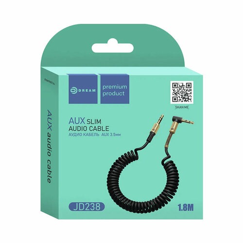 Шнур J3.5-J3.5 1.0м разъем металл один штекер угловой, на пружинке Dream JD237