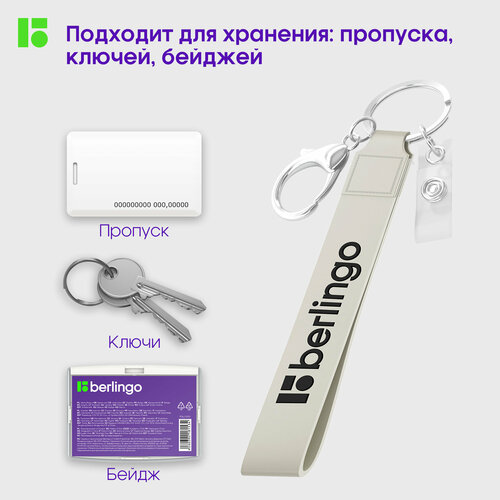 Лента для бейджей Berlingo ID 300 длиной 45 см, с мягким силиконовым клипом поставляется в светло-сером цвете. Каждая лента упакова...