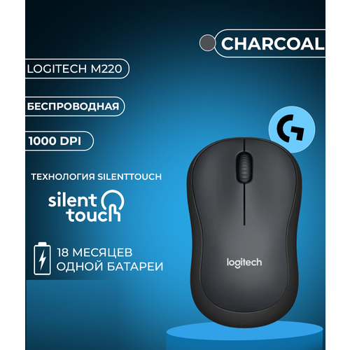 Мышь беспроводная LOGITECH M220 SilentTouch Dark Grey бесшумная