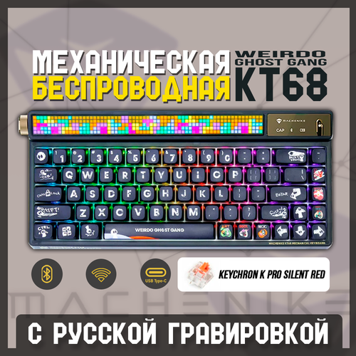 MACHENIKE KT68 Pro Ослепительная Трехрежимная беспроводная механическая клавиатура, Русская раскладка, Weirdo Ghost Gang, Keychron K Pro Silent Red