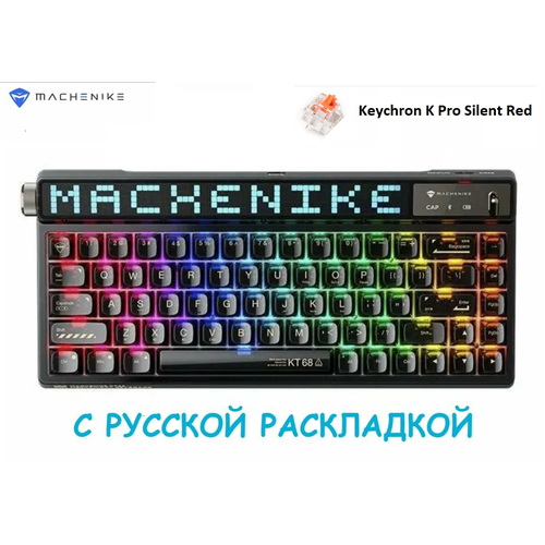 MACHENIKE KT68 Pro Ослепительная Трехрежимная беспроводная механическая клавиатура, Русская раскладка, черная, Keychron K Pro Silent Red