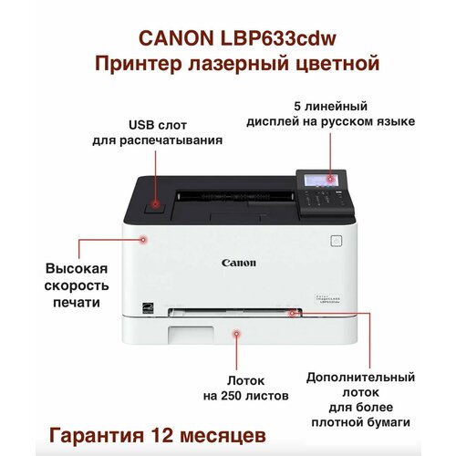 Цветной лазерный принтер Canon i-SENSYS LBP633Cdw, Wi-Fi + двусторонняя печать + оригинальный фотобарабан
