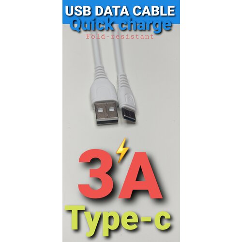 Автомобильный витой кабель USB - TYPE C. Зарядка для телефона в машину 1м. Белый.