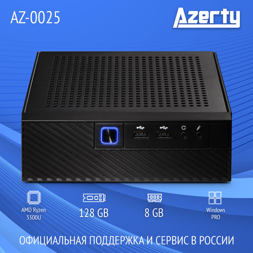 Мини ПК Azerty AZ-0025 (Ryzen R3 3300U 4x2.10 ГГц, 8 Гб DDR4, 128 Гб SSD, Wi-Fi, BT)