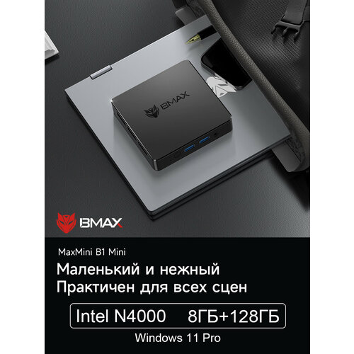 Мини ПК BMAX B1 mini, Intel Gemini Lake N4000, RAM 8 ГБ, ROM 128 ГБ, Intel UHD Graphics 600, Windows 11 Pro, Чёрный