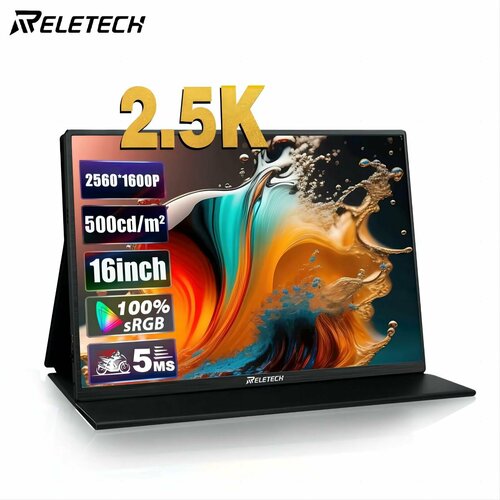 Монитор 16-дюймовый портативный,2560X1600 2.5K 144Гц, игровой дисплей для коммутатора Steam Deck PS5 Xbox, Reletech монитор