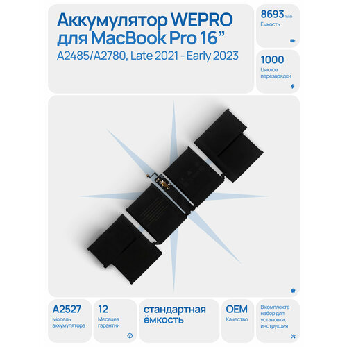 Аккумулятор WEPRO для MacBook Pro 16" A2485/A2780, Late 2021 - Early 2023, стандартная ёмкость 8693 mAh