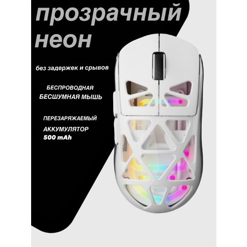 Мышь беспроводная бесшумная игровая, с аккумулятором, неоновой подсветкой М7 цвет белый.