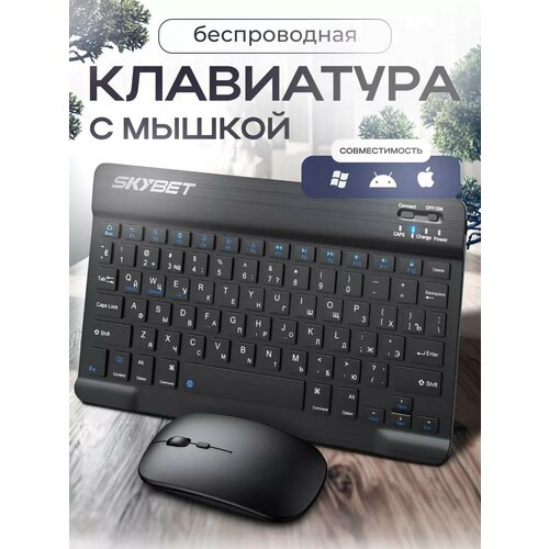 Беспроводная клавиатура SKYBET, с мышью, для компьютера, черная, пластик
