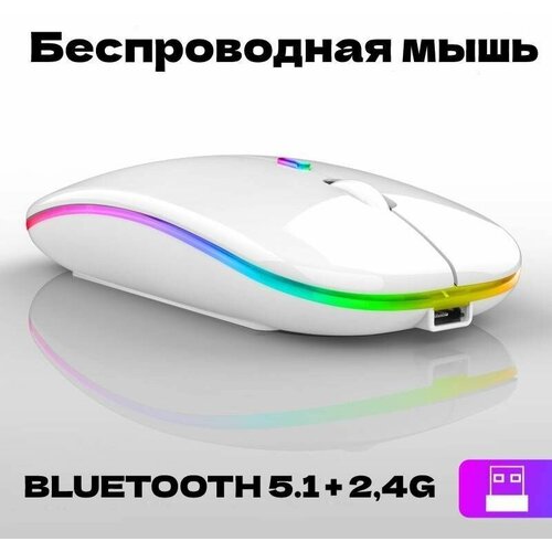 Беспроводная мышка для компьютера со встроенным аккумулятором/ Бесшумная блютуз компьютерная мышь с подсветкой RGB/ Bluetooth/ WiFi 2.4 гц Белая