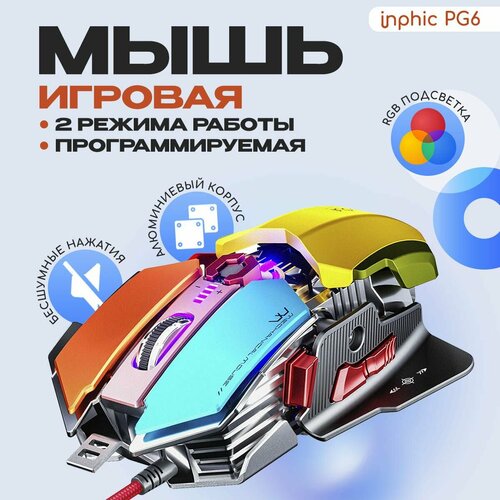 Игровая мышь INPHIC PG6, мышь компьютерная с RGB подсветкой.