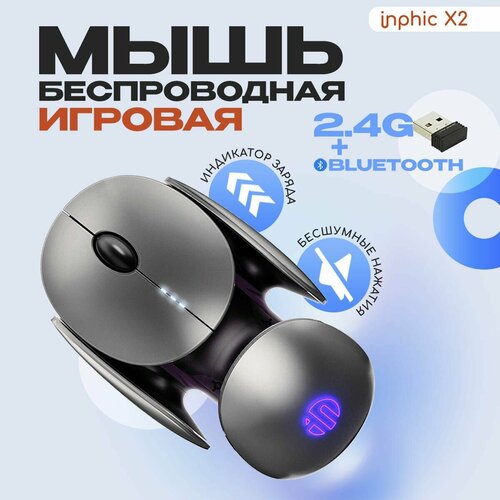 Беспроводная мышь Inphic X2 2,4 ГГц, бесшумная перезаряжаемая металлическая игровая мышь в стиле научной фантастики