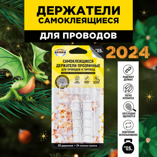 Крючки держатели для гирлянд и проводов, прозрачные, самоклеющиеся, для декора