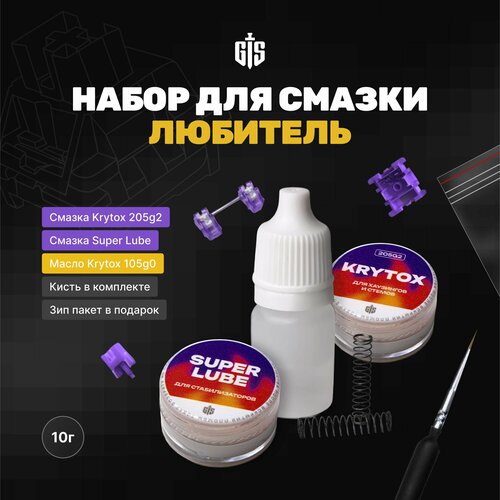 Набор "Любитель" (10 грамм) для смазки переключателей (свитчей), стабилизаторов (Krytox 205g2, Superlube, Krytox GPL105), зиплок и кисточка в комплекте