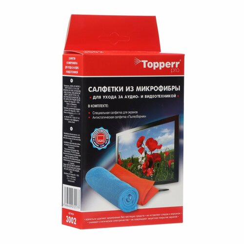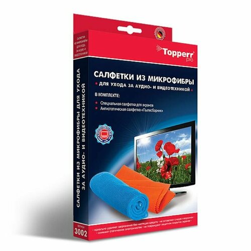 Набор салфеток из микрофибры Тopperr для ухода за аудио- и видеотехникой, 2 шт. (комплект из 3 шт)