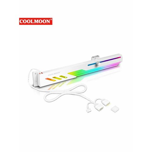 Вентилятор для охлаждения COOLMOON (кулер) с RGB подсветкой для корпуса ПК 120x120x25, контроллер, пульт управления, белый, комплект 3шт, 50см провод