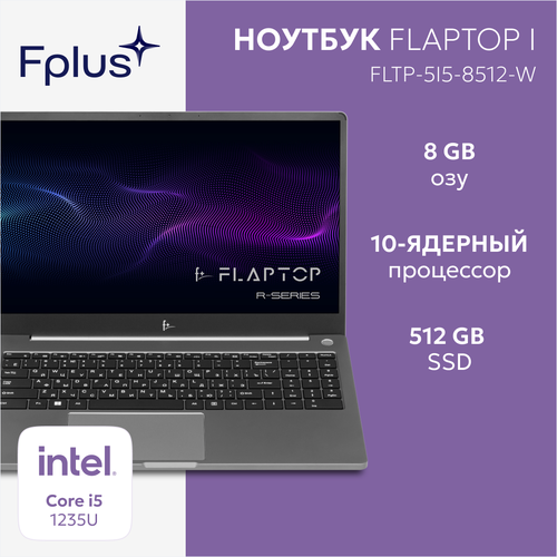 15.6" Ноутбук F+ FLAPTOP5i5-8512-W 1920x1080, Intel Core i5 1235U 4.4 ГГц, RAM 8 ГБ, DDR4, SSD 512 ГБ, Intel Iris Xe Graphics, Windows 11 Home, FLTP-5i5-8512-w, темно-серый
