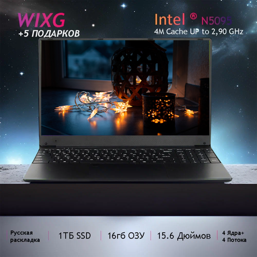 Wixg Ноутбук 15.6, Intel Celeron processor N5095 (2.900ГГц), RAM 16 ГБ, SSD 1024 ГБ, Intel UHD Graphics , Windows home, Черный , Русская раскладка Студенческие игры ноутбуки, рабочие ноутбуки Рабочий ноутбук