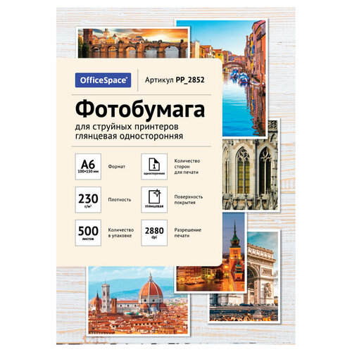 Фотобумага А6 (100*150) для стр. принтеров OfficeSpace, 230г/м2 (500л) глянцевая односторонняя