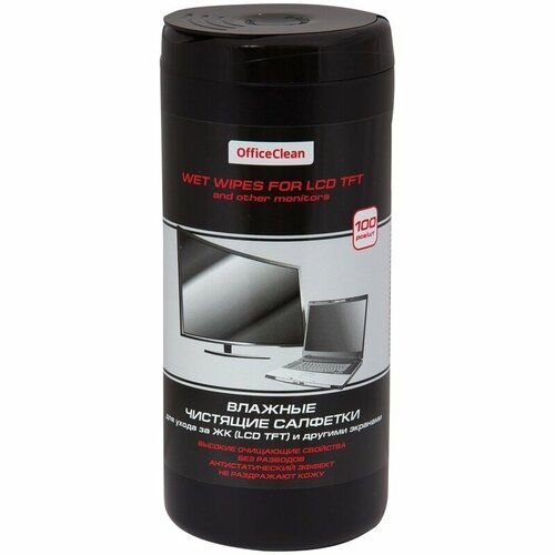 Салфетки чистящие влажные OfficeClean "Pro", для ЖК и других экранов, в тубе, 100 штук (262498)