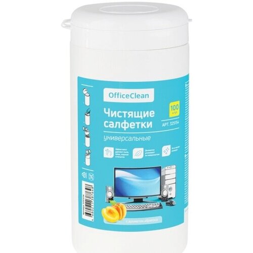 Салфетки чистящие влажные OfficeClean, универсальные, в тубе, с ароматом абрикоса, 100шт. (арт. 325154)