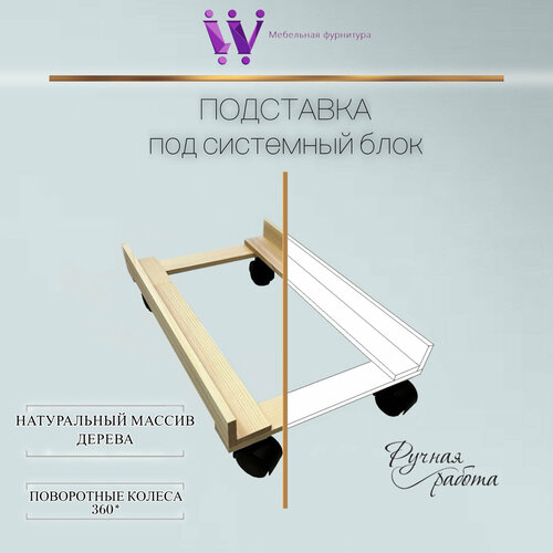Подставка для компьютера под системный блок (натуральное дерево) на колесах