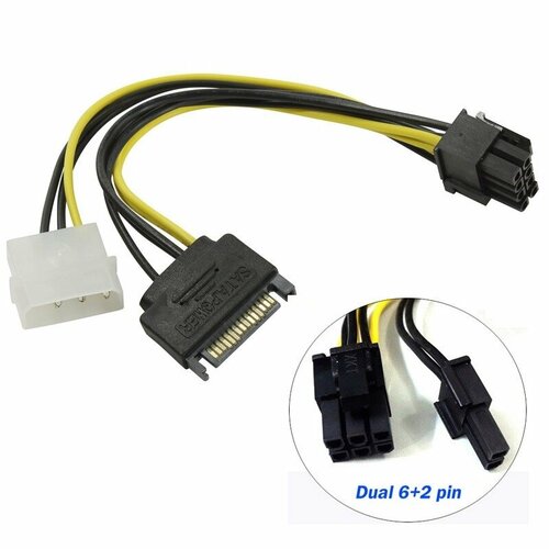 ORIENT C578, Переходник питания для PCI-Ex видеокарт Molex 4pin (M) + SATA 15pin (M) -> 8pin (6pin+2pin)