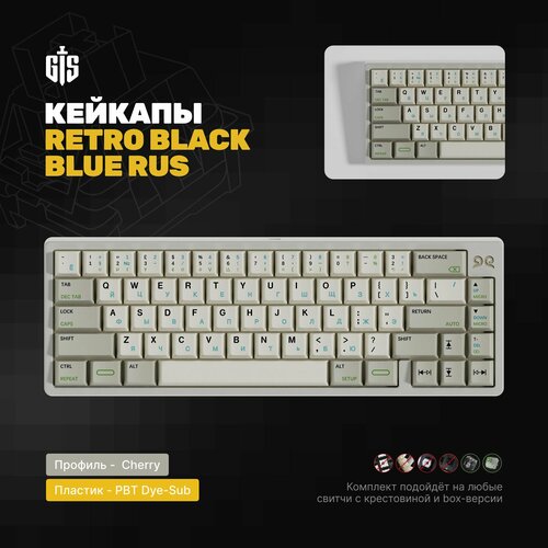Кейкапы с русскими символами Retro Black Blue Rus, профиль Cherry, PBT пластик, кириллица