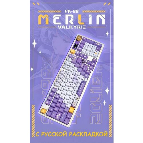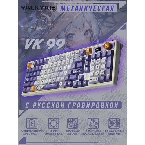 Механическая игровая беспроводная клавиатура VALKYRIE VK99-Merlin. Бело-фиолетовая. Русская раскладка.