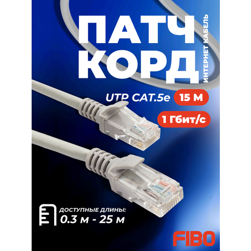 Патч-корд 15 метров, интернет кабель RJ-45, категория 5e, U/UTP, 26 AWG, сетевой Enternet Lan для соединения интернета 15м