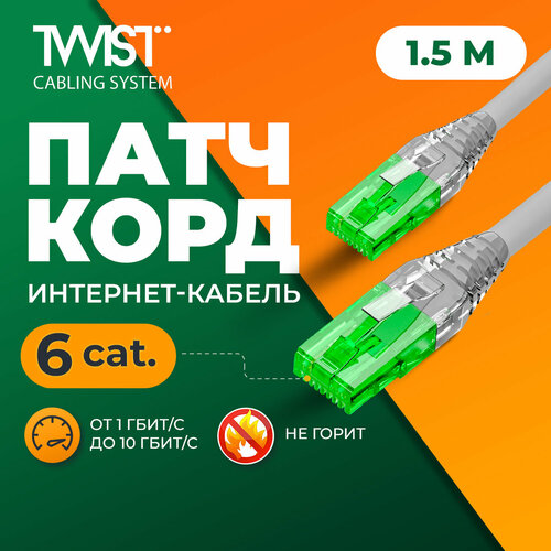 Патч-корд TWIST 1,5 метра, LSZH (негорючий), категория 6 (cat.6), UTP / интернет кабель RJ-45 / сетевой Enternet Lan для соединения интернета, 1,5м