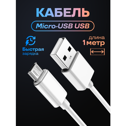 Кабель Micro USB-USB 1м — быстрая зарядка и передача данных для телефона Samsung, Xiaomi, наушников, ноутбуков, провод