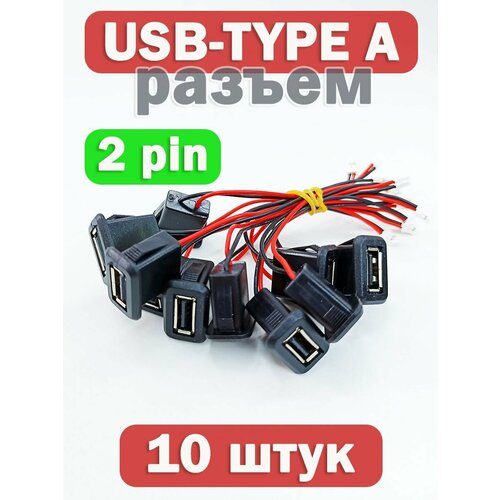 Коннектор штекер USB 2.0 2-PIN / Гнездо питания TYPE-A установочное, комплект 10 штук