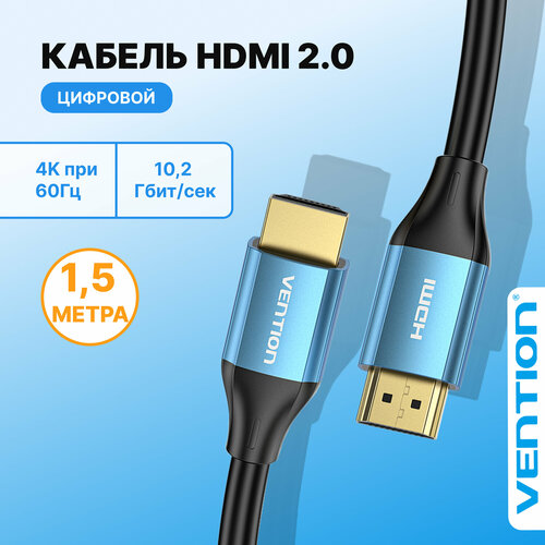 HDMI Кабель HDMI v2.0 длина 1,5 метра, 4К цифровой, Vention провод совместим с телевизором, PS, XboxOne, ПК, проектором арт. ALHSG