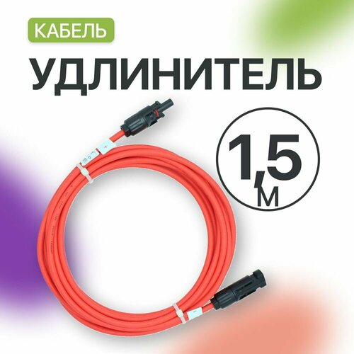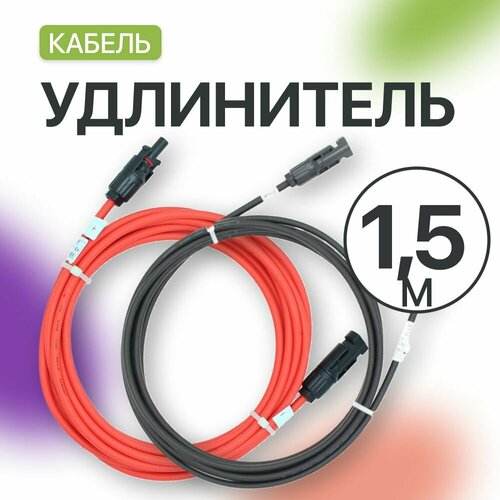 Удлинитель MC4 для солнечных панелей 4 мм (1,5 метра) (комплект 2 шт), красный и черный