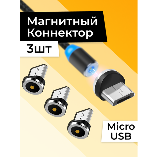 Комплект 3 шт. Магнитный коннектор Micro USB для кабеля / Переходник на кабель Micro USB / Черный