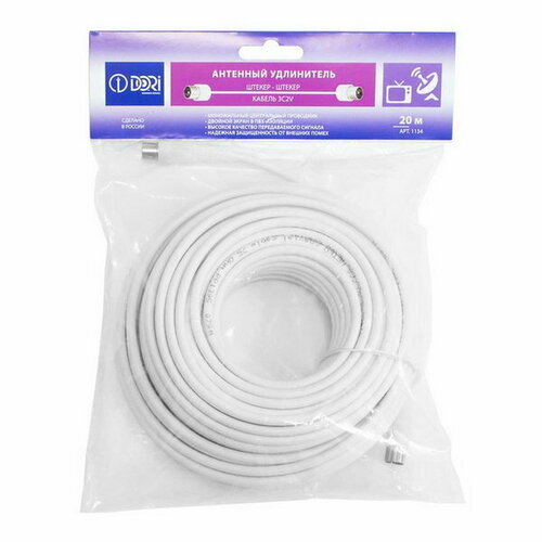 Кабель антенный удлинитель 3c2v 20м бел. (шт. TV - гн. TV) DORI 1134-1