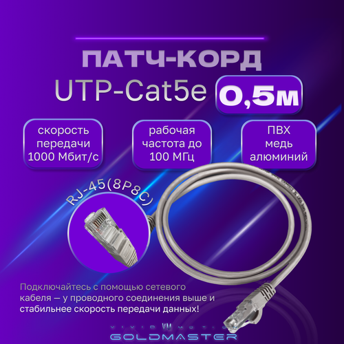 Патч корд 0,5 м Голд Мастер UTP 5е RJ45 интернет кабель 0,5 метра LAN сетевой Ethernet патчкорд (NA102--0,5M), контакты blade с позолотой 03FU