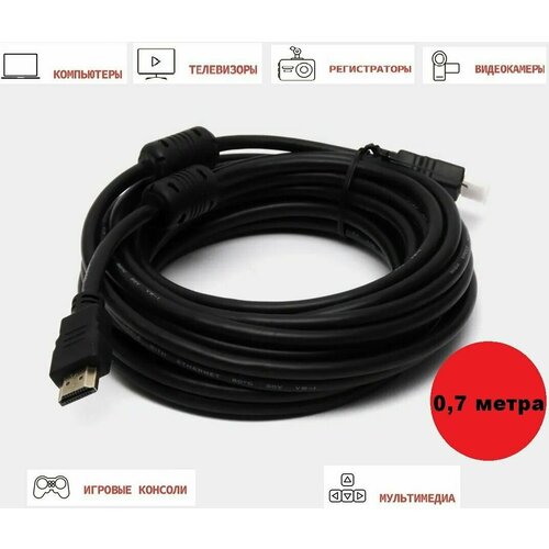Кабель HDMI-HDMI, GOLD с ферритовыми кольцами 0,7 м, версия 1.4