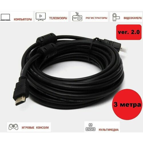 HDMI кабель 3м, 4K, ver 2.0, игровой, цифровой с фильтрами