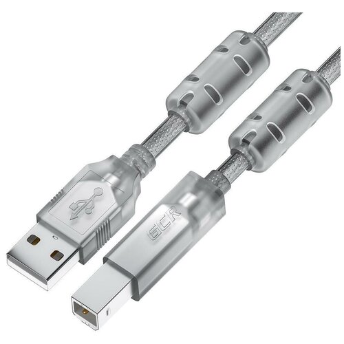 GCR Кабель PROF 3.0m USB 2.0, AM/BM, прозрачный, ферритовые кольца, 28/24 AWG, экран, армированный, морозостойкий, GCR-52424