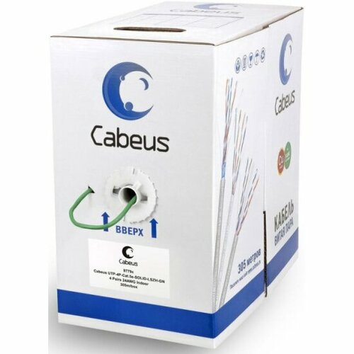 Кабель витая пара CABEUS UTP-4P-Cat.5e-SOLID-LSZH-GN UTP (U/UTP), категория 5e, 4 пары (24 AWG), одножильный, LSZH