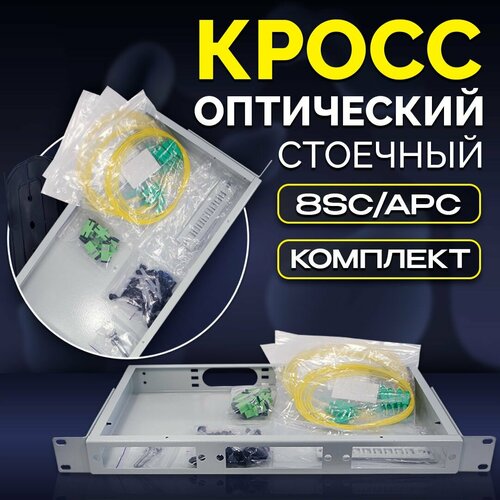 Кросс оптический стоечный на 8 портов SC APC в комплекте